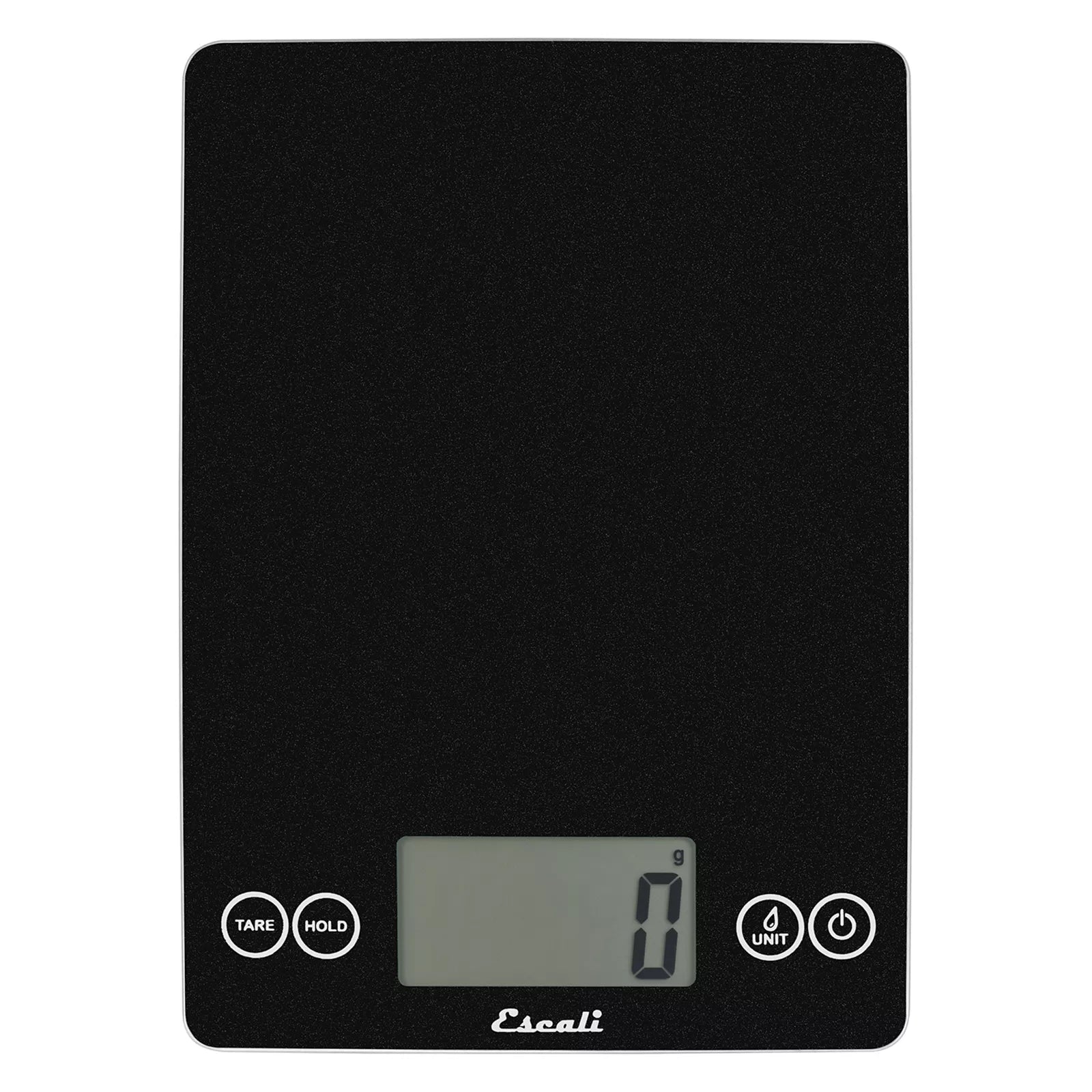 Add a splash of color to your kitchen with the Escali ARTI Glass Digital Kitchen Scale in Black Obsidian. The scale has a weighing capacity ranging from 0.1 ounces (1 gram) all the way to 15 pounds. The smooth glass surface allows for easy cleanup. The large display is 50% larger than most kitchen scales and is crisp and clear for easy reading.